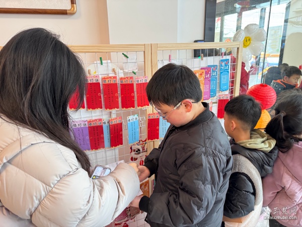 在詩(shī)詞接龍與成語(yǔ)競(jìng)猜環(huán)節(jié),孩子們引經(jīng)據(jù)典、對(duì)答如流,從唐詩(shī)宋詞的婉約豪放到成語(yǔ)典故的博大精深,一句句經(jīng)典在稚嫩的童聲中流淌,國(guó)學(xué)文化的種子也在孩子們心中悄然生根。猜燈謎環(huán)節(jié),一個(gè)個(gè)巧妙融入文學(xué)知識(shí)的謎面,引得孩子們或凝神思索,或歡呼雀躍。射福套圈等趣味游戲更是讓歡聲笑語(yǔ)灑滿書(shū)房,孩子們?cè)谟螒蛑懈惺軅鹘y(tǒng)民俗的獨(dú)特魅力,也收獲了一份份承載祝福的小禮物。