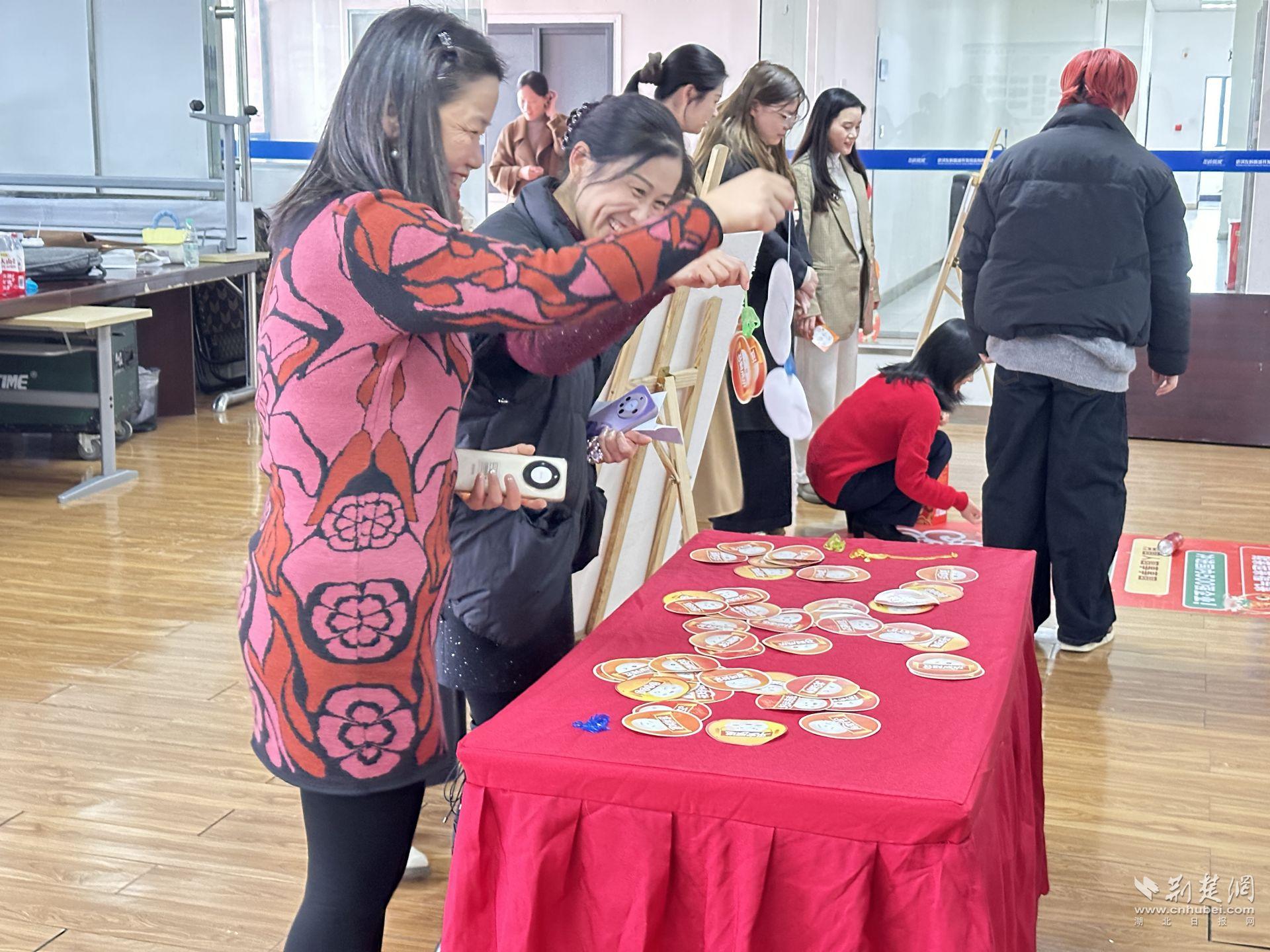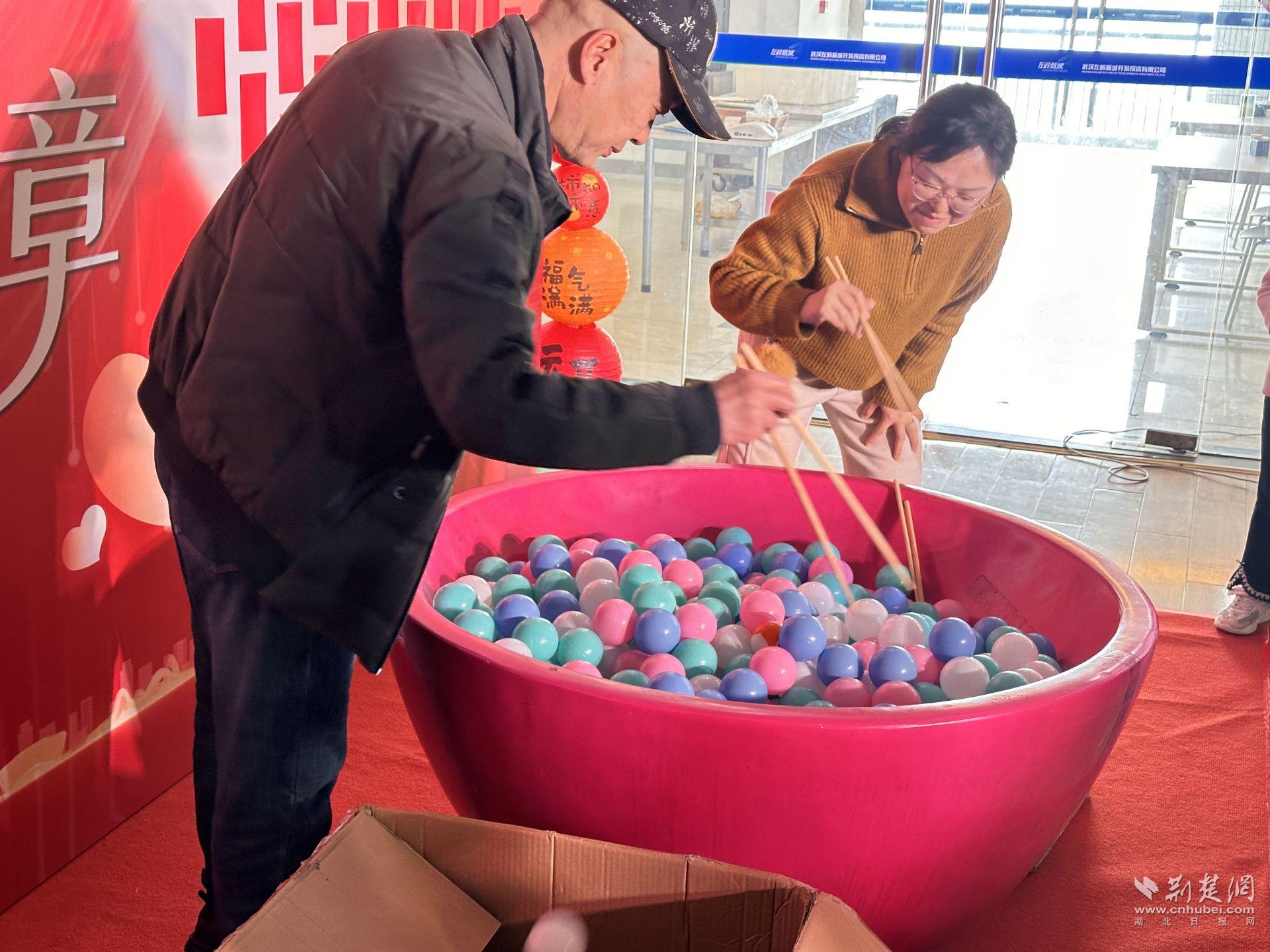 自由游戲區(qū)同樣人氣十足。滾動(dòng)“湯圓”的祝福賽道前,員工認(rèn)真調(diào)整力度,期待停在“招商企業(yè)100家!”“沖進(jìn)國(guó)內(nèi)500強(qiáng)企業(yè)”等激勵(lì)區(qū)域;“福氣粘粘到”桌前,十秒鐘的挑戰(zhàn)讓人屏氣凝神;燈謎區(qū)前,有人皺眉思索,有人靈光一閃,最終猜出謎底贏得掌聲。