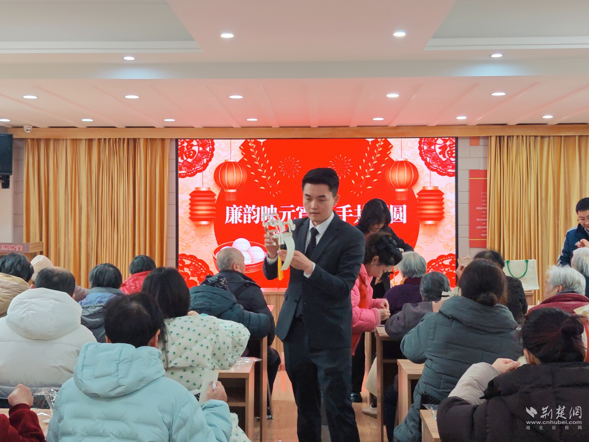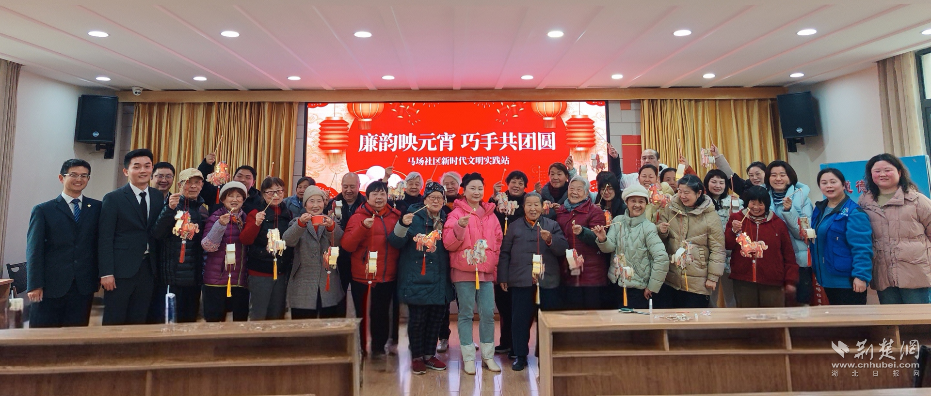荊楚網(wǎng)(湖北日報網(wǎng))訊(記者 何婧 通訊員 顧蝶)3月3日,元宵佳節(jié)來臨之際,江漢區(qū)唐家墩街道馬場社區(qū)新時代文明實踐站聯(lián)合頤倫養(yǎng)老服務中心、合眾人壽舉辦“廉韻映元宵 巧手共團圓”主題活動。社區(qū)黨員、居民代表和志愿者齊聚一堂,在做燈籠、猜燈謎、品湯圓中共度佳節(jié),也在潛移默化中接受了一堂生動的廉潔教育課。