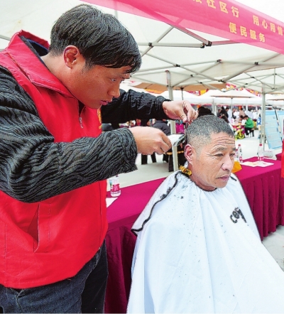 便民服務(wù)區(qū)升騰著最撫慰人心的“煙火氣”。宋忠橋志愿服務(wù)隊(duì)的理發(fā)攤位前,居民有序排隊(duì)。剛理完發(fā)的劉大爺對(duì)著鏡子照了又照,滿意地說(shuō):“姜城師傅的手藝,很贊!”