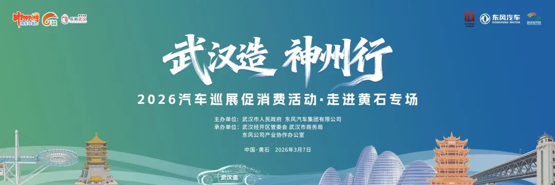 3月7日,“武漢造 神州行”2026汽車巡展促消費(fèi)活動(dòng)·走進(jìn)黃石專場將在黃石市團(tuán)城山萬達(dá)廣場舉行。這也是2026汽車巡展促消費(fèi)活動(dòng)新春第三站。