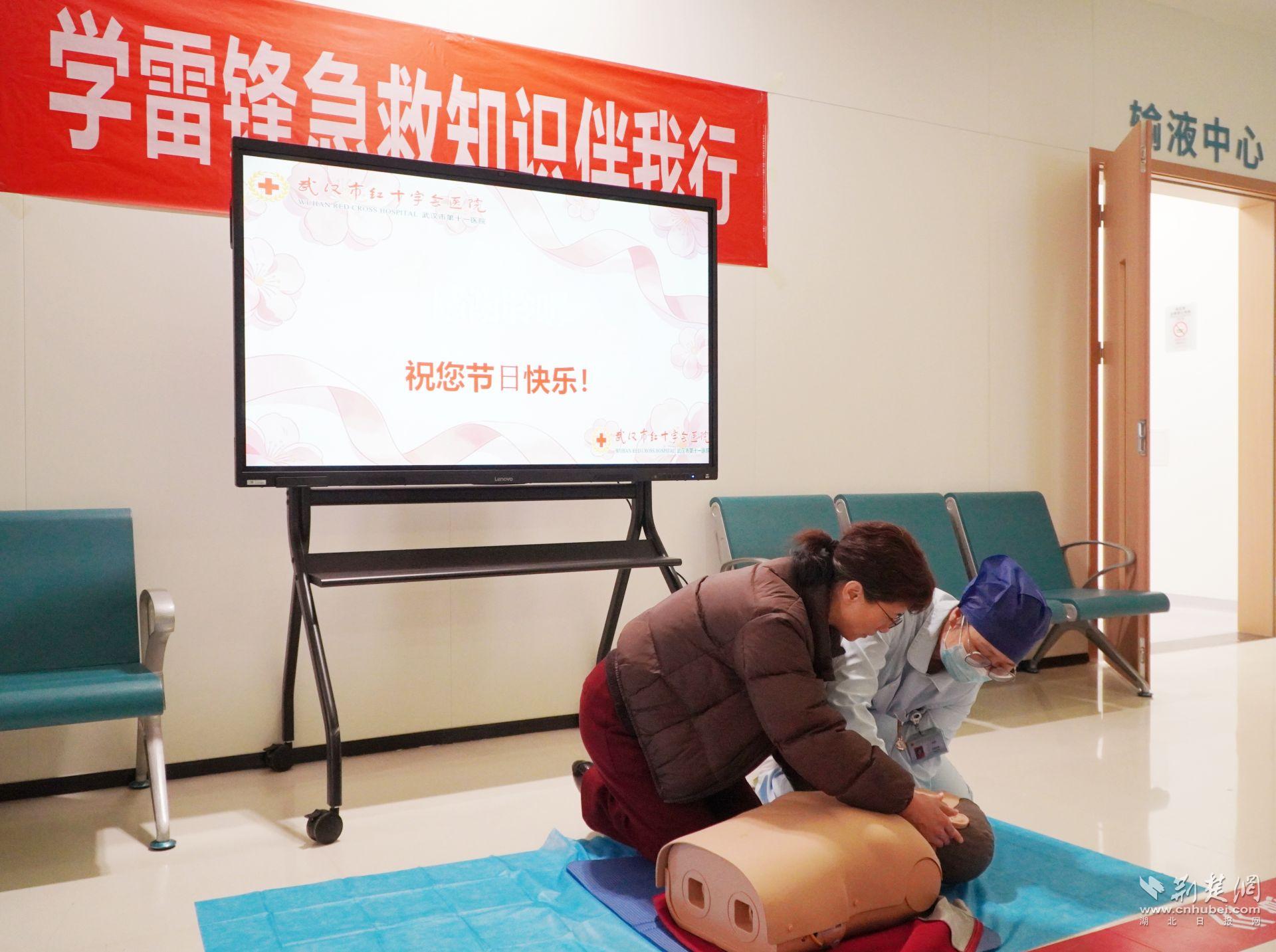 作為湖北省縣級臨床重點??疲撛杭痹\醫(yī)學(xué)科常年承擔(dān)區(qū)域急救培訓(xùn)任務(wù)。在“3.5”學(xué)雷鋒志愿服務(wù)活動中,醫(yī)院“青囊先鋒志愿服務(wù)隊”的7名成員走進萬松街青年社區(qū),為社區(qū)居民開展“學(xué)雷鋒,急救知識伴我行”活動,即徒手心肺復(fù)蘇等急救知識培訓(xùn),為構(gòu)建全民急救網(wǎng)絡(luò)貢獻力量。
