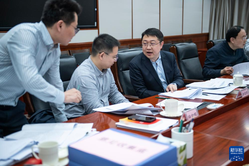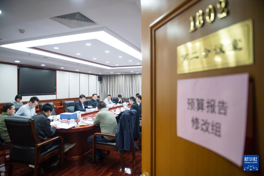 3月7日,財政部工作人員根據代表意見建議討論修改2026年預算報告。新華社記者 孫瑞博 攝