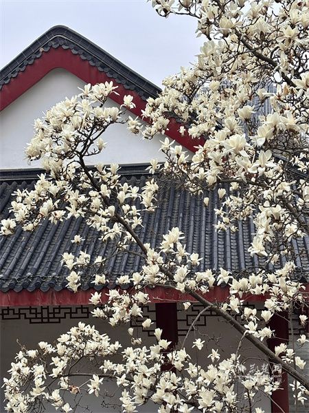 不與繁花爭艷,只在古檐下靜靜綻放,潔白如玉,溫潤如詩。一樹芳華,半盞禪心,于喧囂塵世中守一份清雅。駐足凝望,花影綽約,光影流轉(zhuǎn),仿佛時光都慢了下來。這一抹素白,是春日最溫柔的詩意,也是古觀里最動人的清歡。