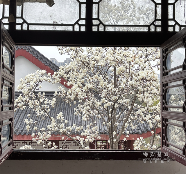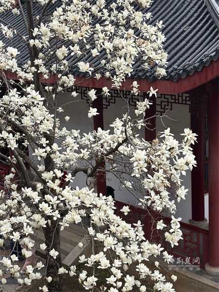 荊楚網(wǎng)(湖北日報網(wǎng))訊(通訊員 杜茜)春日漫步長春觀,青磚黛瓦之間,幾樹玉蘭花悄然盛放。素白花瓣如云似雪,在古觀的靜謐中輕展身姿,不染塵俗,自帶清逸。微風拂過,暗香浮動,淡淡花香縈繞鼻尖,與道觀的禪意相融,更添幾分空靈。