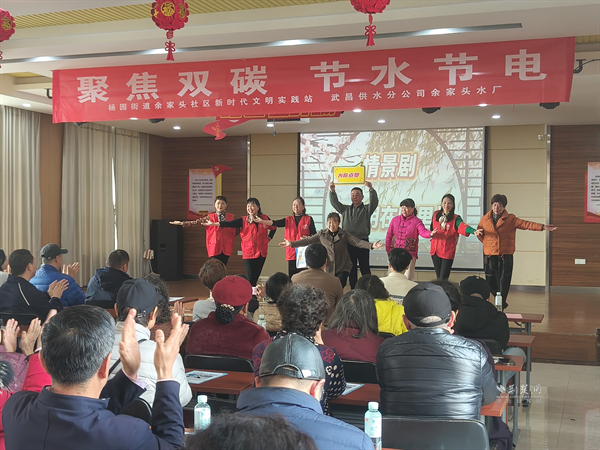 荊楚網(wǎng)(湖北日?qǐng)?bào)網(wǎng))訊(通訊員 魏文婷 侯本瑞)3月18日,在第34屆“世界水日”、第39屆“中國(guó)水周”到來(lái)之際,武昌區(qū)楊園街道余家頭社區(qū)新時(shí)代文明實(shí)踐站攜手武昌供水分公司余家頭水廠,共同舉辦百姓大舞臺(tái)“聚焦雙碳,節(jié)水節(jié)電”主題活動(dòng)。活動(dòng)在武昌區(qū)新時(shí)代文明實(shí)踐中心指導(dǎo)下,將綠色低碳理念融入文藝展演、科普互動(dòng)、便民服務(wù),為居民奉上一場(chǎng)“聽(tīng)得懂、看得見(jiàn)、用得上”的生態(tài)文明實(shí)踐課。