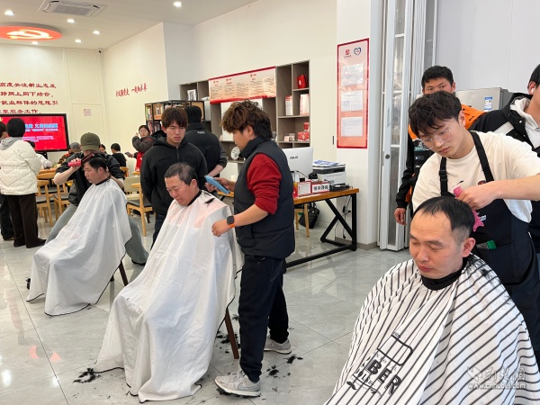 義診區(qū)旁,武昌“新興學(xué)院”天姿美發(fā)教學(xué)點(diǎn)的志愿者們支起簡(jiǎn)易理發(fā)攤。他們手持剪刀,耐心詢問(wèn)每一位騎手的發(fā)型偏好,細(xì)致滿足各式需求。正值“龍?zhí)ь^”理發(fā)的傳統(tǒng)吉日,短短半天時(shí)間,志愿者們便為40余名騎手換上了精神抖擻的新發(fā)型,讓大家在奔波忙碌中也能容光煥發(fā)。街道工作人員全程引導(dǎo),維持秩序、遞上熱水,現(xiàn)場(chǎng)井然有序,暖意流淌。