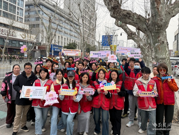 他們手持彩旗、奏響樂器,用旋律和吶喊在賽道旁匯聚成一道道流動的風(fēng)景線。鼓聲、樂聲、歡呼聲交織在一起,奏響了春日江城最動聽的交響曲。
