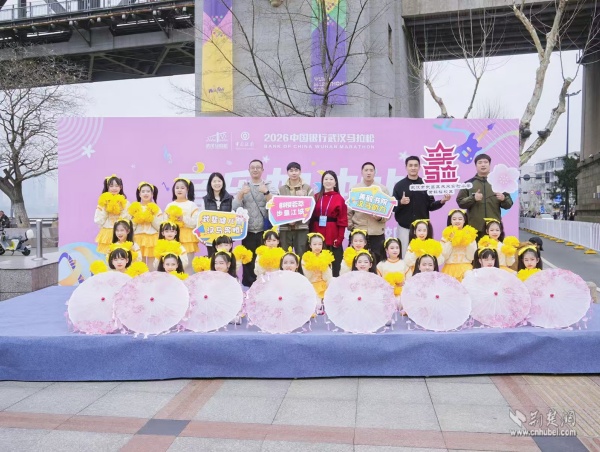 賽道之外,“民間音樂加油站”同樣精彩紛呈。武漢音樂學(xué)院中樂系學(xué)子擊鼓而鳴,音樂商戶武漢眾樂樂器員工用躍動的音符引爆現(xiàn)場氛圍。彭劉楊路社區(qū)共建單位彭劉楊郵政支局員工熱情助陣,大成社區(qū)汪老師童聲合唱團的清脆童聲、武昌未來實驗小學(xué)(黃鶴樓校區(qū))小朋友們的亮麗裝扮,為賽道增添了一抹靈動的色彩。讀書社區(qū)聯(lián)合湖北中醫(yī)藥大學(xué)第一臨床學(xué)院青年黨員為漢馬選手加油鼓勁,社區(qū)居民身著紅衣,敲響鑼鼓,用最質(zhì)樸的方式傳遞最真摯的熱情。