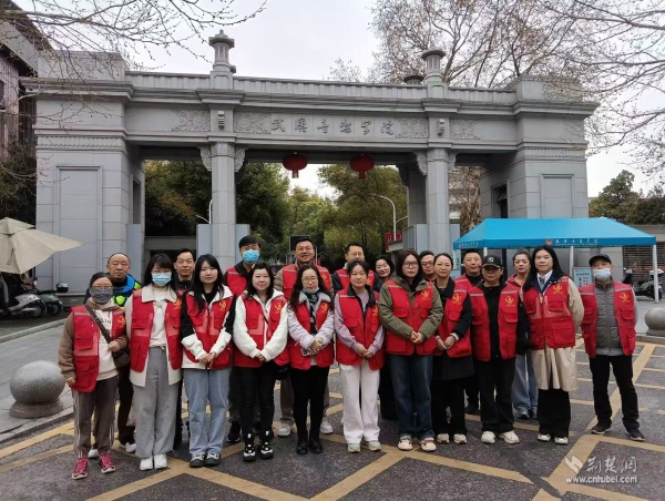 彭劉楊路社區(qū)工作人員與“黃鶴家人”志愿者與為漢馬護航。