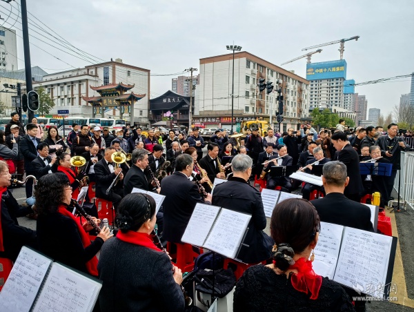 黃鶴樓街社區(qū)教育學(xué)院西廠口社區(qū)教學(xué)點管樂團用音樂助力漢馬。 通訊員供圖