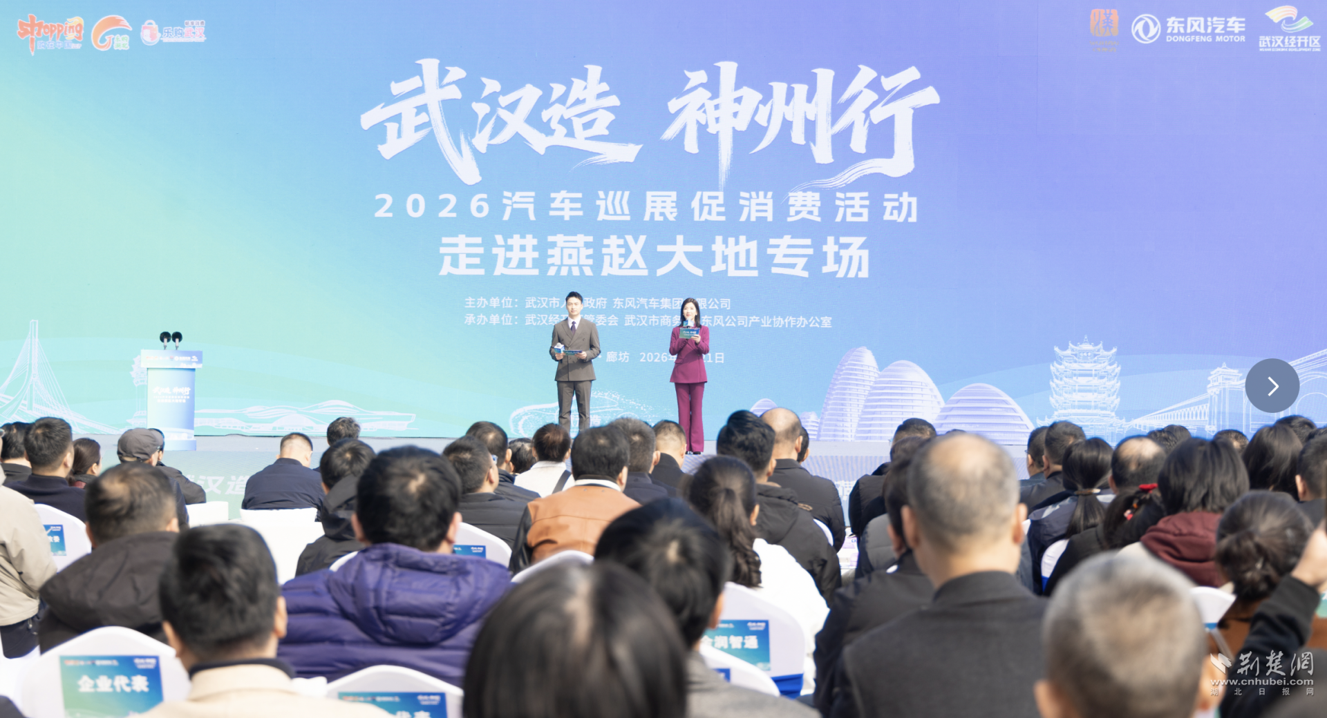 荊楚網(wǎng)(湖北日?qǐng)?bào)網(wǎng))訊(通訊員蔣秋雨、李巋)3月21日,“武漢造 神州行”2026汽車巡展促消費(fèi)活動(dòng)·走進(jìn)燕趙大地專場(chǎng)在河北廊坊舉行,這是“武漢造”汽車巡展促消費(fèi)活動(dòng)首次走進(jìn)燕趙大地。