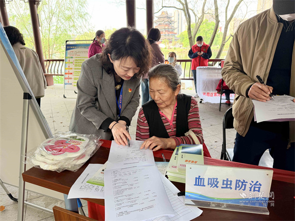 現(xiàn)場宣傳普及血吸蟲防治知識。 通訊員供圖