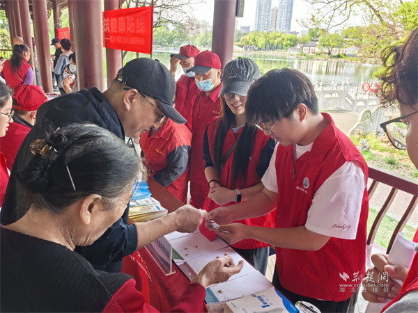 此外,紅十字志愿服務(wù)隊聯(lián)合家庭醫(yī)生團隊開展心肺復(fù)蘇、AED使用等急救技能培訓(xùn),醫(yī)護人員講解春夏季傳染病防控與科學(xué)膳食知識,消殺人員現(xiàn)場演示“翻盆倒罐”、規(guī)范用藥等病媒防制實操技巧。長江大學(xué)地球科學(xué)學(xué)院大學(xué)生志愿者也主動參與,在紫陽湖沿岸及公園人流密集區(qū),通過趣味互動普及生態(tài)環(huán)保、垃圾分類知識,引導(dǎo)居民樹立“每個人是自己健康第一責(zé)任人”的理念。