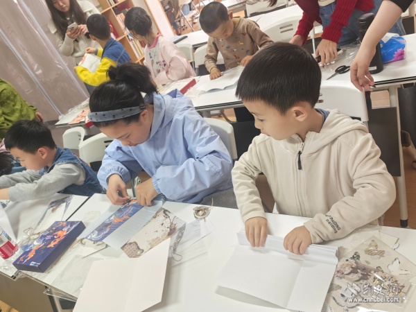 在隨后的“巧手制作書燈”環(huán)節(jié),孩子們在“集光社”大學(xué)生志愿者的指導(dǎo)下,動(dòng)手制作屬于自己的閱讀書燈。大家充分發(fā)揮想象力,將一片片材料精心拼貼、折疊、組裝,變成了一盞盞獨(dú)具匠心的工藝品。燈光亮起,映照著孩子們的臉龐,也照亮了他們對知識(shí)的渴望與對未來的憧憬。