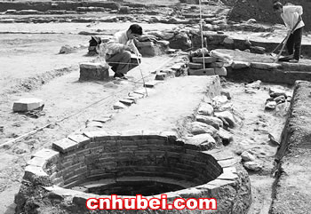舊城廢墟走向新縣城           全景宋代水井         水位線下的房屋被拆除