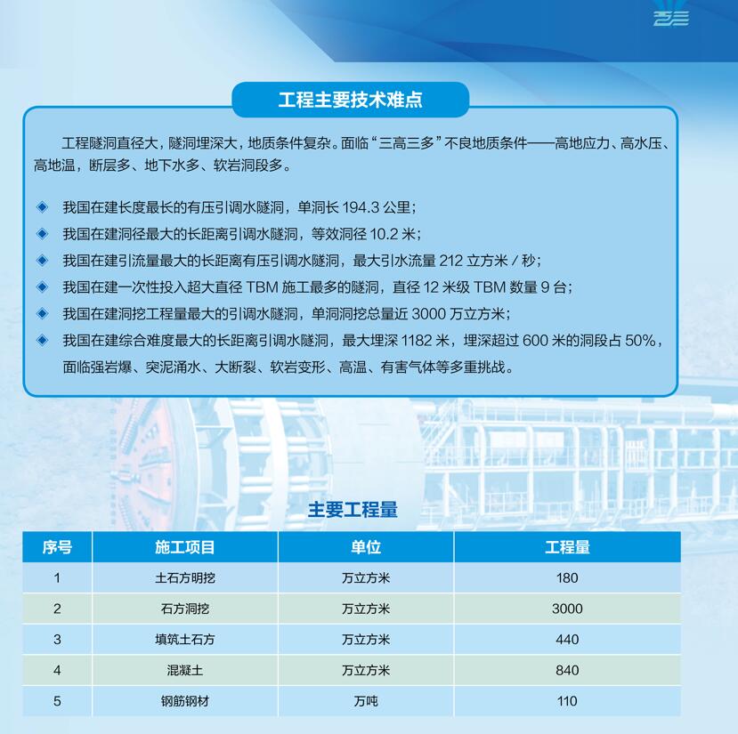 據(jù)介紹,工程輸水總干線采用有壓單洞自流輸水,沿線地質(zhì)條件復雜,面臨強巖爆、突泥涌水、大斷裂、軟巖變形、高溫、有毒氣體等多重挑戰(zhàn),施工難度極大。工程設(shè)計與施工將再一次提升我國水利建設(shè)科技能力。
