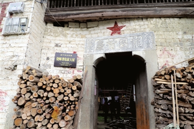 在該村5組饒獅壟包家,有一處老宅格外引人注目。一顆碩大的紅五星下面的門楣上,鐫刻“龍圖衍慶”四個碩大的繁體字。屋子的門窗、樓閣上雕滿精致的圖案,仔細(xì)辨認(rèn),可以看出是古裝戲文。