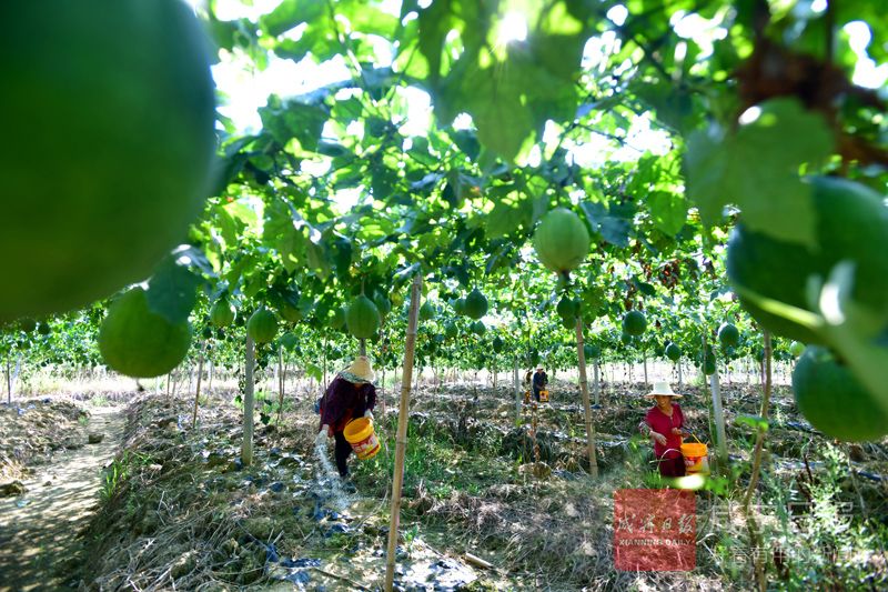 8月20日,赤壁市茶庵嶺鎮(zhèn)云臺山村豐盈瓜蔞種植農(nóng)業(yè)開發(fā)有限公司基地,當?shù)剞r(nóng)戶正在施肥。