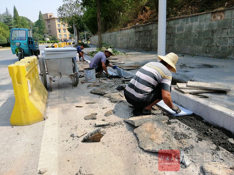 咸寧網(wǎng)訊(香城都市報(bào)記者周陽 通訊員許勝利 李沁)市區(qū)麥笠山路地處溫泉旅游核心區(qū),毗鄰潛山國家森林公園,是重要的城市景觀道路。9月12日上午,記者看到,該道路潛山廣場至袁家灣路口路段700多米人行道正在進(jìn)行升級改造,施工現(xiàn)場一片繁忙,工程車輛鋪裝混凝土、工人們開挖人字溝、鋪設(shè)流水板……