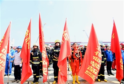 這是9月19日上午,我市今年舉行的又一場(chǎng)“迎大慶、保軍運(yùn)”應(yīng)急救援綜合拉動(dòng)演練。