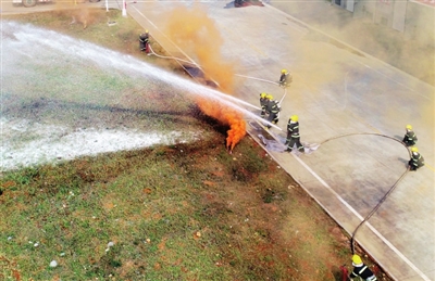 由200余人組成的民兵防火救災(zāi)應(yīng)急救援營(yíng),迅即分成偵查組、救生組、滅火組三個(gè)救援小組,配備應(yīng)急搶修車、舉高噴射車、水罐泡沫消防車、灑水車、發(fā)電車等20余輛救援車輛,進(jìn)入事發(fā)現(xiàn)場(chǎng)。