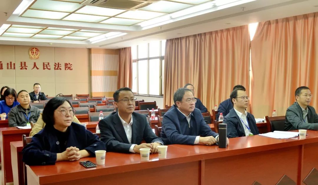 省市縣相關(guān)領(lǐng)導在通山縣人民法院安保指揮中心觀摩庭審直播
