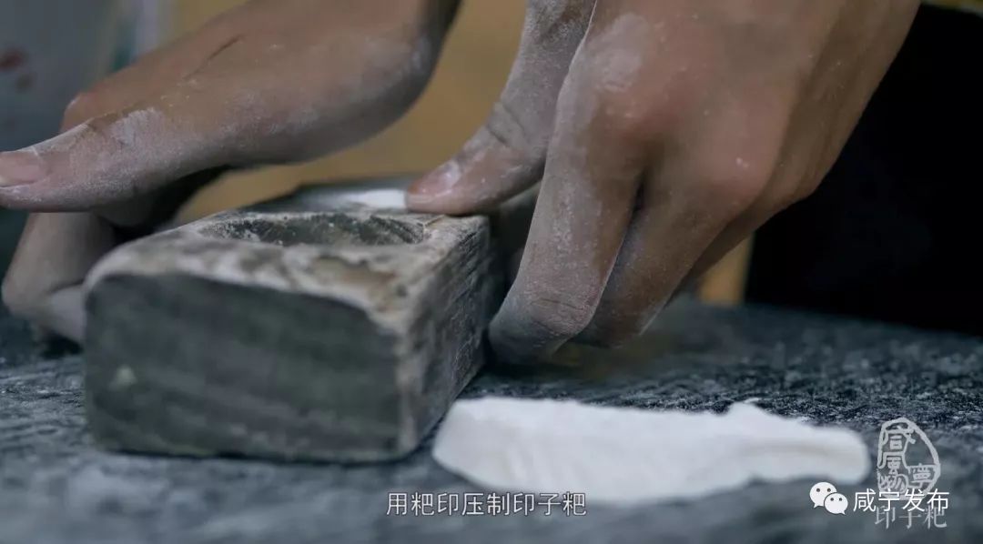 印子粑是咸寧鄉(xiāng)村廣為流傳的民俗食品,一般在春節(jié)和孩子一歲生日時(shí)制作。粑印用木制,每個(gè)粑印有1-3個(gè)空模,形狀一般只有小茶杯口大。粑印里刻有反向的如魚以及花、草等各種動(dòng)植物圖案,制作出來(lái)的粑邊緣有一圈花紋,形象生動(dòng),栩栩如生。堆成的粑山,晶瑩透亮,造型美觀,堪稱優(yōu)秀的民間藝術(shù)品。
