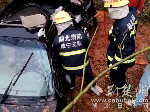 圖為消防員破拆車子營救現(xiàn)場。 通訊員 朱濤攝
