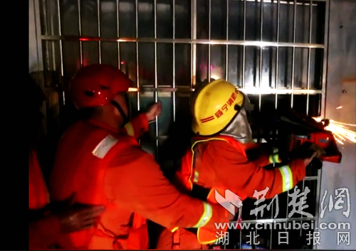 圖為消防員破拆防盜網(wǎng)救援現(xiàn)場。通訊員 葛棟 攝