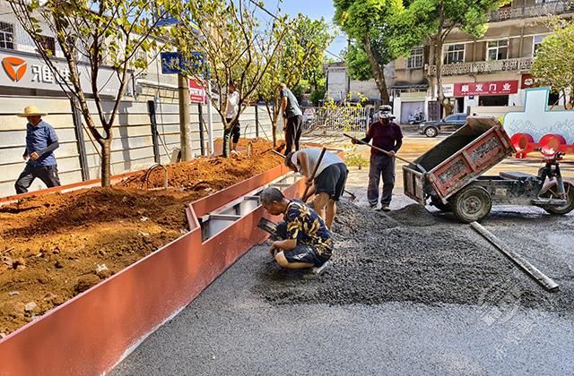 8月8日,在赤壁市車站路兒童友好街區(qū)施工現(xiàn)場(chǎng),來自赤壁建工集團(tuán)的工人們,正在機(jī)械的配合下,有條不紊地進(jìn)行著街道改造施工。