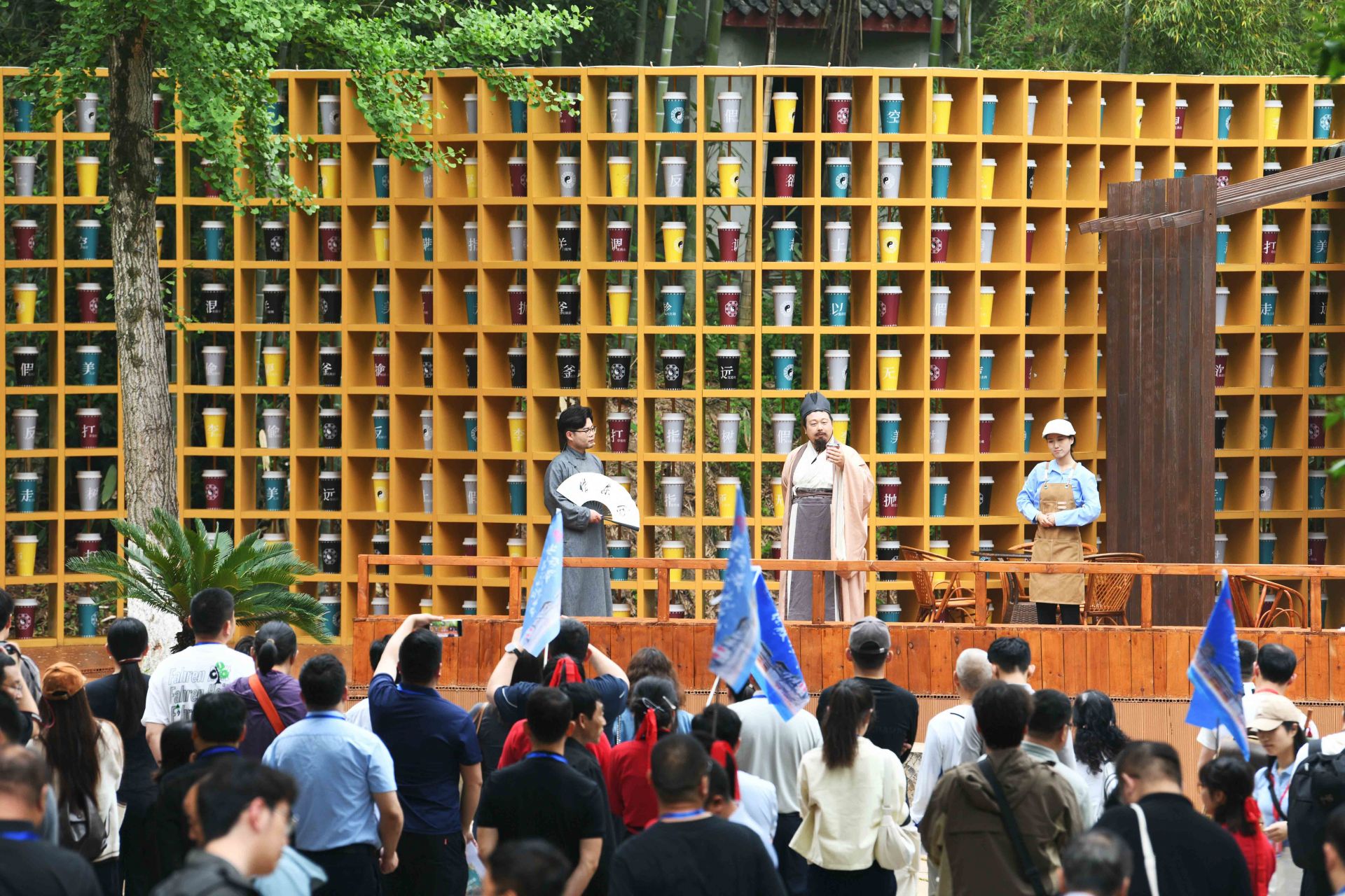 4月26日晚,三國赤壁古戰(zhàn)場景區(qū),《赤壁·借東風》實景演藝劇全球首演。一名“說書人”用現(xiàn)代人的口吻,串起一部三國與現(xiàn)代的穿越劇:舞臺上,演員、道具、光影重現(xiàn)“草船借箭”“苦肉計”“空城計”等歷史典故;看臺上,游客化身將士,隨劇情節(jié)奏拍打赤壁非遺——腳盆鼓(相傳為孫劉聯(lián)軍赤壁之戰(zhàn)鼓舞士氣的樂器)……現(xiàn)場,觀眾與演員深度融合,沉浸式體驗三國英雄氣概,仿佛一場跨越千年的對話。