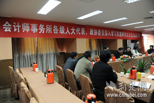 與會代表在會上紛紛發(fā)表了自己的看法和建議。咸寧市咸安區(qū)政協(xié)委員、咸寧市永興會計師事務(wù)所總經(jīng)理張麗平動情的說,自從改制后,老黨員沒有了"娘家",新黨員進步無門,注冊會計師行業(yè)的黨員感覺被組織邊緣化了,深入學習實踐科學發(fā)展觀活動的開展,使黨員們與組織接上了頭,通過學習實踐活動,可以提高隊伍素質(zhì),樹立注冊會計師良好形象,有助于注冊會計師行業(yè)形成誠信、公正的社會形象。