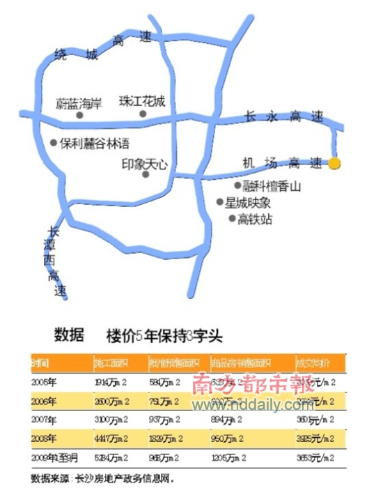 如 果 說(shuō) 廣 州 是 個(gè)“ 大 工地”,長(zhǎng)沙可以說(shuō)是一個(gè)正在開(kāi)發(fā)中的“超級(jí)大盤”。打開(kāi)一張本地發(fā)布的《長(zhǎng)沙樓市圖》,發(fā)現(xiàn)地圖上密密麻麻都布滿了樓盤,在這個(gè)占地1.18萬(wàn)平方千米的大地盤分成了10多個(gè)大型的地產(chǎn)板塊,每個(gè)板塊都有數(shù)十個(gè)樓盤在售。