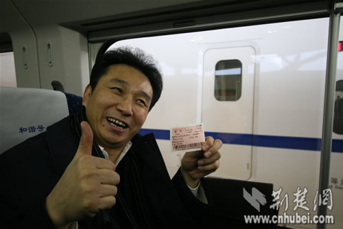 田克兢接受記者采訪時表現(xiàn)得格外興奮,他還高興地向記者展示了車票。他說,早就在關(guān)注武漢高鐵了,能有機(jī)會親自體驗,實在激動。