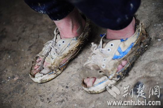 在大方縣興隆村,小女孩高燕穿的球鞋看了讓人心疼。5個腳趾全露在外面,鞋面與鞋底僅靠幾根棉絲相連,高燕一直都是靠這雙鞋爬山上學(xué),到了學(xué)校再換上好一點(diǎn)的球鞋。