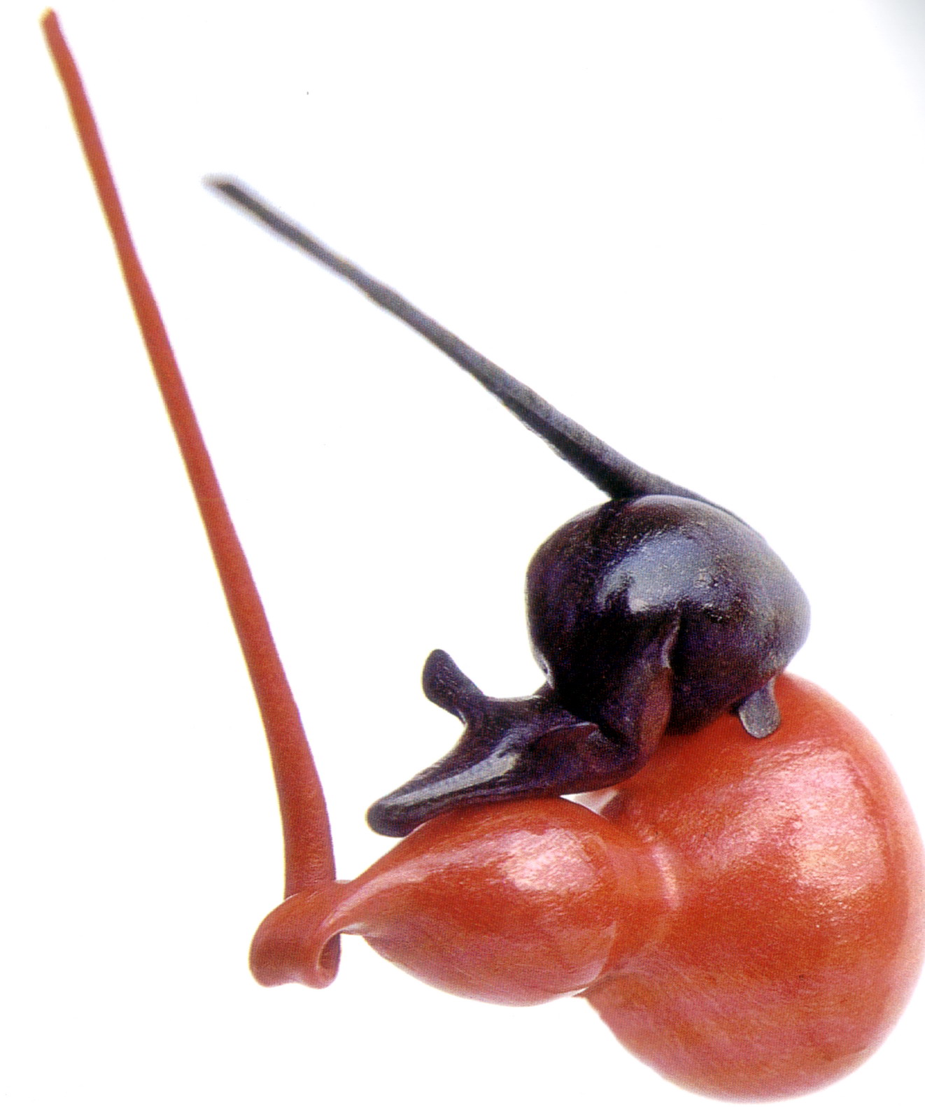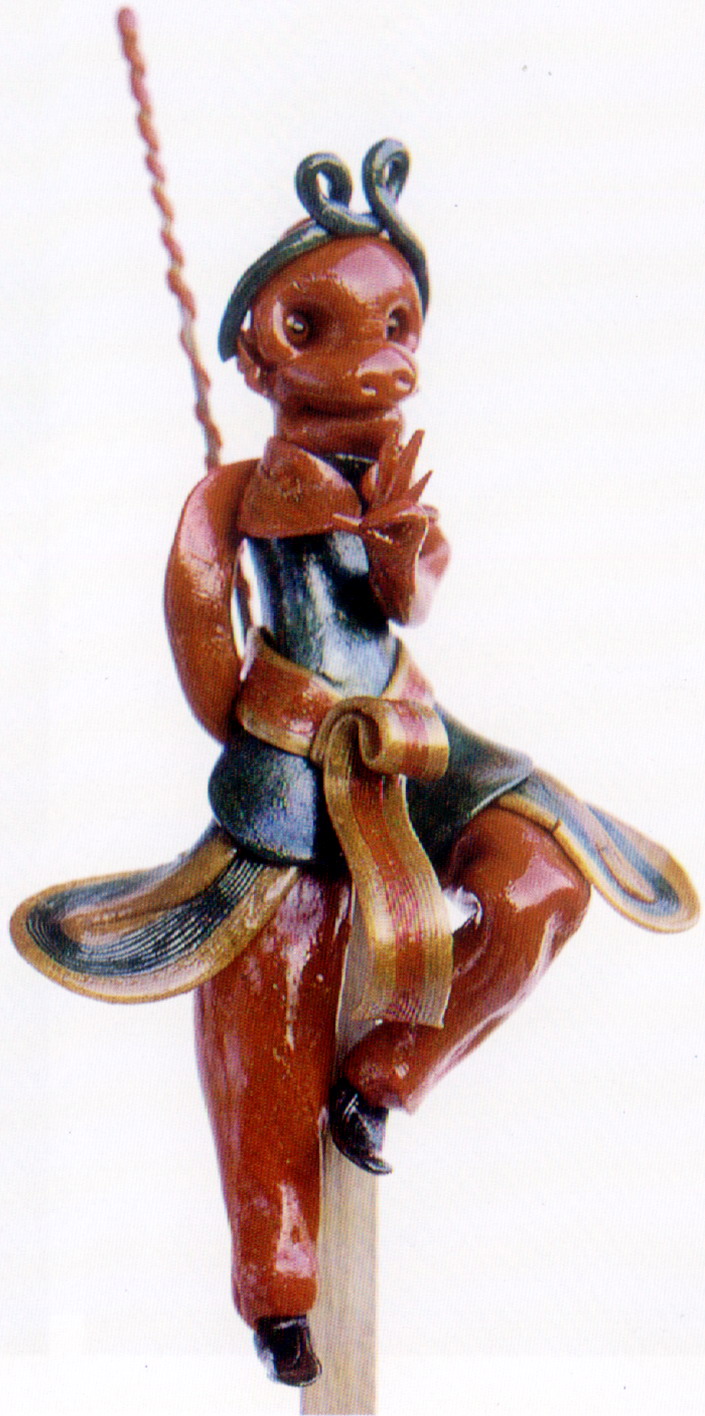 糖塑,俗稱吹糖,在湖北遍及全省,尤以天門最為突出。糖塑之所以贏得人們的喜愛,是因?yàn)樗?dú)具特色:1、原料可塑性強(qiáng):麥芽糖是糖塑的主要原料,加熱后變軟,比面塑更具可塑性,既可吹成薄而亮的各類造型,又可拉成粗細(xì)不同的糖絲。捏成不同形狀的配件,易粘且牢固;2、造型神形兼?zhèn)洌禾撬艿募妓囍饕Ψ蛟凇按怠鄙,一塊糖坯在藝人手中,邊吹邊捏,再通過搓、壓、挑、剪等手段,加上輔助的小鐵絲,少則幾分鐘,多則半小時(shí),一件作品就完成了;3、色彩和諧醒目:麥芽糖加溫變軟加入紅、綠、黃、黑四種色素,根據(jù)需要又可調(diào)和成數(shù)十種復(fù)色,色彩響亮和諧;4、肌理變化豐富是糖塑獨(dú)具的特點(diǎn):在糖塑中,附件變化萬千的肌理又與主體吹成光滑的表面形成鮮明的對比,顯得更加豐富耐看;5、“活”的部件是糖塑的又一特點(diǎn):有的部件裝上自制的鋼絲彈簧,一經(jīng)拿在手中,部件都“活”起來了,更具生氣。