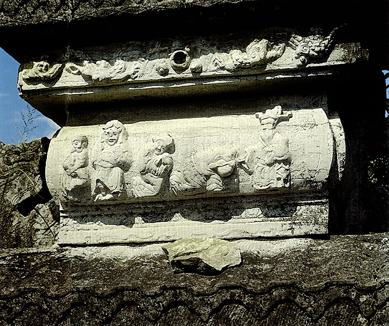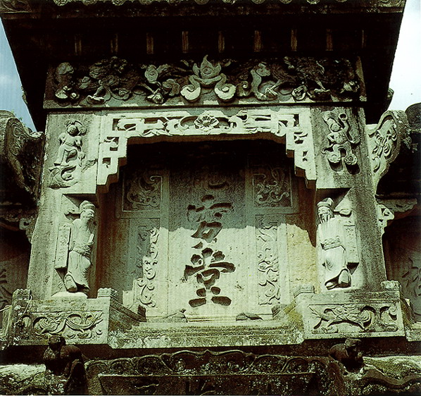 石雕 湖北省北有秦嶺東沿的武當(dāng)山、大別山、桐柏山,西接云貴高原,東南為幕阜山脈環(huán)繞,中部是寬闊的江漢平原。山區(qū)產(chǎn)石料,為石雕提供了豐富的用材;平原燒泥土制磚瓦,鐫以圖案美化建筑。民間石雕、磚雕分布,與地形大體一致。?凳耦}材廣泛,大致分為日常生活、倫理教化、神話傳說(shuō)、戲文故事、花鳥(niǎo)蟲(chóng)魚(yú)、書(shū)文楹聯(lián)六類(lèi)。